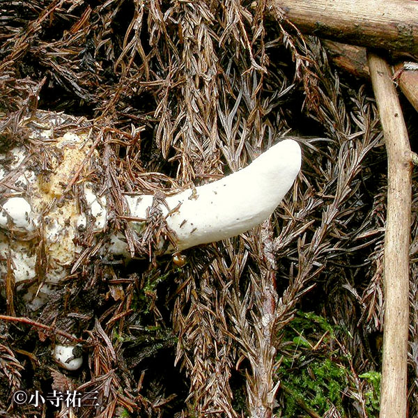 | 形態 | スッポンタケの幼菌(菌蕾)から長さ3~8cm角状に子嚢果が伸びる。時に先端は分岐し、最初は淡黄土色であるが後に橙褐色となる。子嚢殻は完全埋生型。成熟すると開口し、やや粗面になる。 |