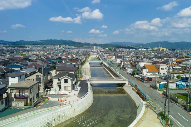 都市化の進展に伴う内水被害が発生しており、昭和61年の出水では家屋浸水3,274戸の浸水被害が発生したことから、床上浸水対策特別緊急事業等により、集中的な対策工事を行い、令和4年6月に河道拡幅工事が概成しました。