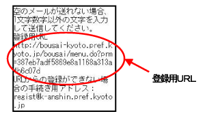 ※ 直接、登録用URLを入力しても正常に手続きが行われませんので、必ず空メールから手続きを行って下さい。