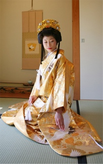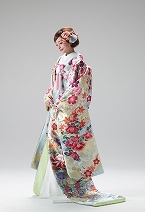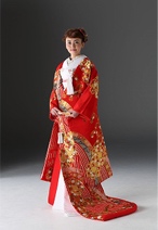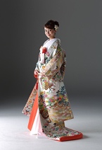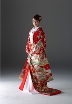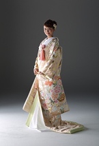 白以外の鮮やかな色を使った打掛で、色は赤、緑、黒が多く、金箔を使った刺繍で華やかさがあります。女性の正式な和装で、挙式でも着ることはありますが、一般的には披露宴、祝宴でのお色直しの時に着ることが多いです。