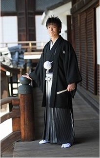 紋付羽織袴(もんつきはおりはかま)は、現在一般的に和服における男性の第一礼装とされています。紋付の長着に袴をはき、紋付の羽織を着けます。黒色が正礼装になります。