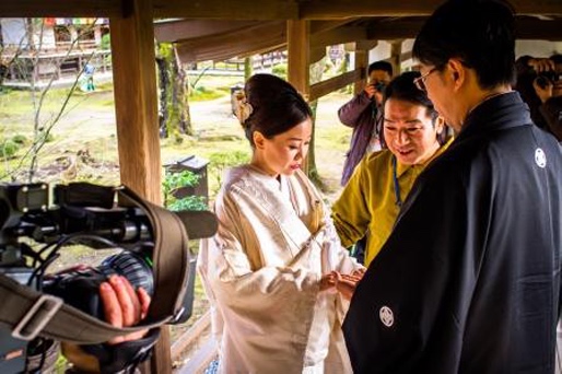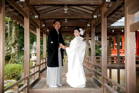 伝統的な雰囲気の中、写真を撮影し、結婚する実感が湧いてきました。観光客の方から「おめでとう」と声をかけていただき、嬉しい気持ちになりました。着付け担当の方に、移動時、裾を上げていただき、歩きやすくしてくださるなど、フォトウェディング中のスタッフの皆さんの細やかな心遣いも嬉しかったです。
