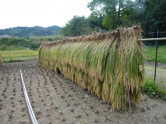 稲は思っていたより重くて、束ねて干すのは大変でしたがみんなで協力して行いました。