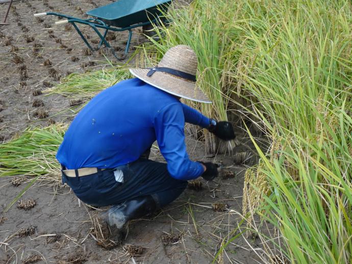 田植えをした餅米の稲刈りを行いました。