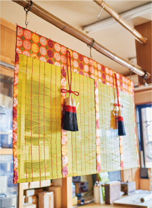 寛政期の創業以来、代々家業としてきた御簾づくりは幼い頃から身近にあり、自然な流れでこの仕事に就きました。京都や奈良を筆頭に、日本全国の名だたる社寺に、私たちがつくった御簾をお納めできるのが誇りです。神仏に近い場所で使うことが多いので、真摯(しんし)な心持ちでものづくりに取り組んでいます。