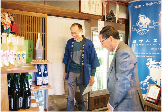 与謝野町にて日本酒の新商品開発に取り組む事業者を訪ねる西脇知事(令和6年12月)