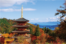 与謝野町にある紅葉の名所「慈徳院(じとくいん)」。「紅葉寺」としても知られ、約600本の紅葉が山一面を彩ります。境内の旧本堂跡や、石階段から望む景色は絶景です。