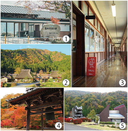 (1)川の駅・亀岡水辺公園(亀岡市)、(2)美山かやぶきの里(南丹市)、(3)質美(しつみ)笑楽講(旧質美小学校)(京丹波町)、(4)安国寺(綾部市)、(5)日本の鬼の交流博物館(福知山市)