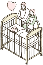 子育ての医療に係る経済的負担を軽減するため、市町村と共に中学校卒業までの子どもの医療費を助成。〈所得制限なし〉