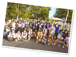 子育てに対するポジティブなイメージを幅広い年代へ普及するため、京都サンガF.C.と連携したPRや府内各地でのキャラバンを実施。
