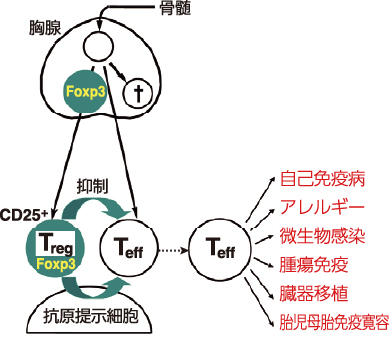 制御性T細胞による免疫制御の概念図(大阪大学作成)