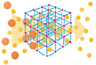 MOFはナノレベルの微細な孔(あな)を利用して、分子の〈貯蔵〉〈分離〉〈変換〉などを行うことができる