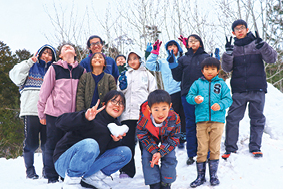 2泊3日の冬の宿泊体験の中で、スノーシューハイクや雪遊び、餅つき、ピザづくりなど、盛りだくさんのアクティビティを楽しみます。※積雪がない場合は、プログラム内容を変更します