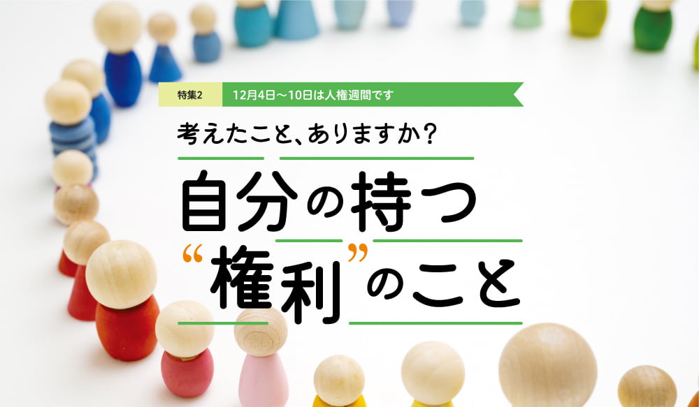 自由に意見を言うこと。安心して暮らすこと。差別されないことー。これらはすべて、人として生きるために誰もが持っている権利です。しかし普段の生活の中で自分の“人権”を意識することは、多くないかもしれません。そんな“自分の持つ権利”について、改めて一度、考えてみませんか?