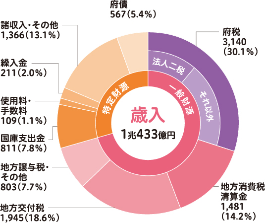 - 法人二税とそれ以外からなる府税3,140(30.1%)