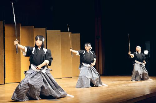刀剣や扇子を用い、独特な節調の吟詠にのせて舞う吟詠剣詩舞。流麗かつ凛とした雰囲気が見る者を魅了する。