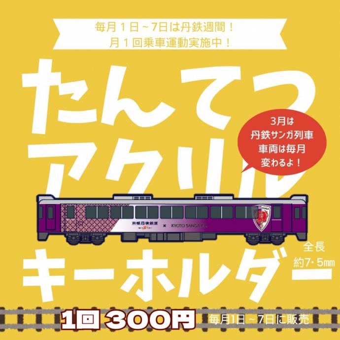 月1回乗車運動実施期間である毎月1日~7日に、毎月異なる丹鉄車両をデザインした、アクリルキーホルダーを期間限定で販売いたします!
