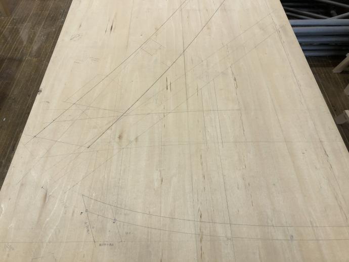 そのひとつに、原寸図の作製があります。原寸図とは、字の如く、原寸大の製図のことです。一般家屋の建築で作製することは多くありませんが、社寺建築では必須の工程です。