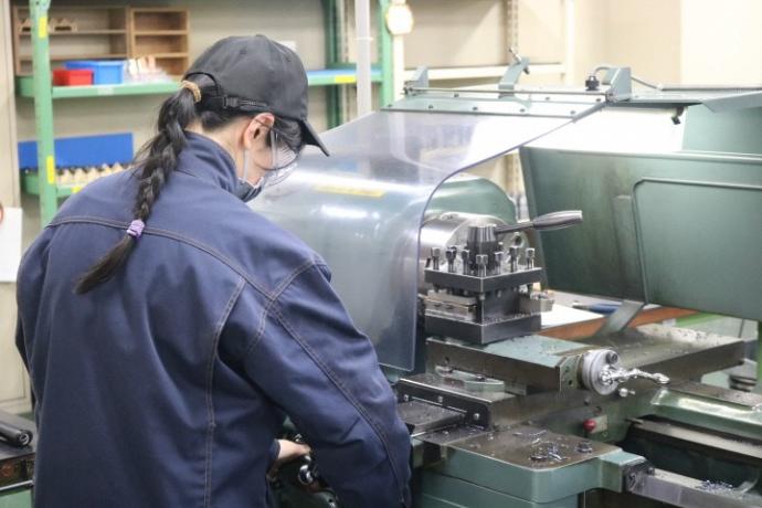指導員のお手本を見ながら、自分で書いた工程表を頼りに加工をするのが難しいところですが、12月に普通旋盤3級の技能検定を受験したばかりなので、短時間で新しい工程を習得し加工できるようになりました。