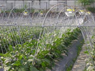収穫盛期を迎えた京山科なすの様子(8月上旬)