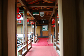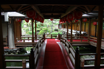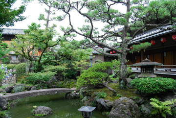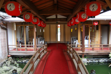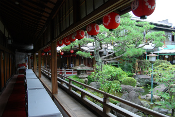 明治期の木造建築の歌舞練場(劇場施設)。庭園には鯉のいる池もあり、風情がある。平成18年に改築した茶室が庭園内にあり、貸茶室もしている。また、雰囲気のよい喫茶スペース「茶(さ)ろん上七軒」があり、夏期以外は11~16時に洋食や飲み物を提供している。