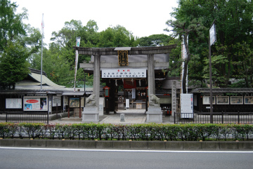 全国にも珍しい狛犬ならぬ雌雄一対の狛いのしし。