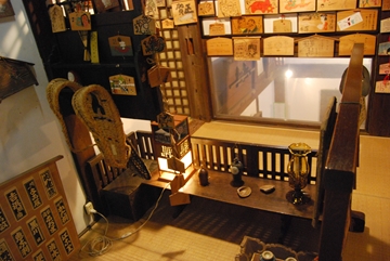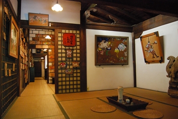 絵馬館は1階と2階に分かれており、1階は古代が主で、大絵馬の代表50点を展示。1820年代の作品が多い。2階は小絵馬と文楽、現代のマスメディア関係者の絵馬が多数。