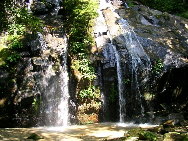 金引の滝は、宮津市街中心から南西方向に位置し、日本の滝百選にも選ばれた美しい滝です。