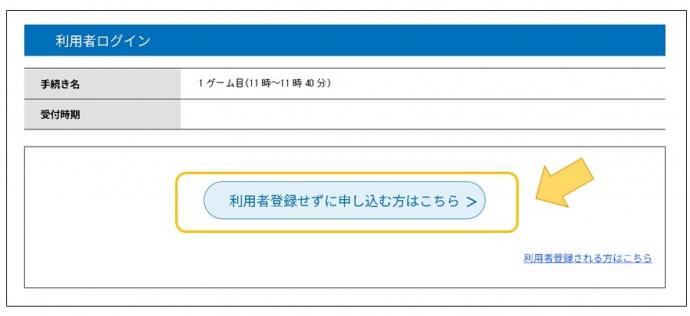 [利用者登録せずに申し込む方はこちら]をクリックし、利用規約をお読みいただき、[同意する]ボタンをクリックしてください。