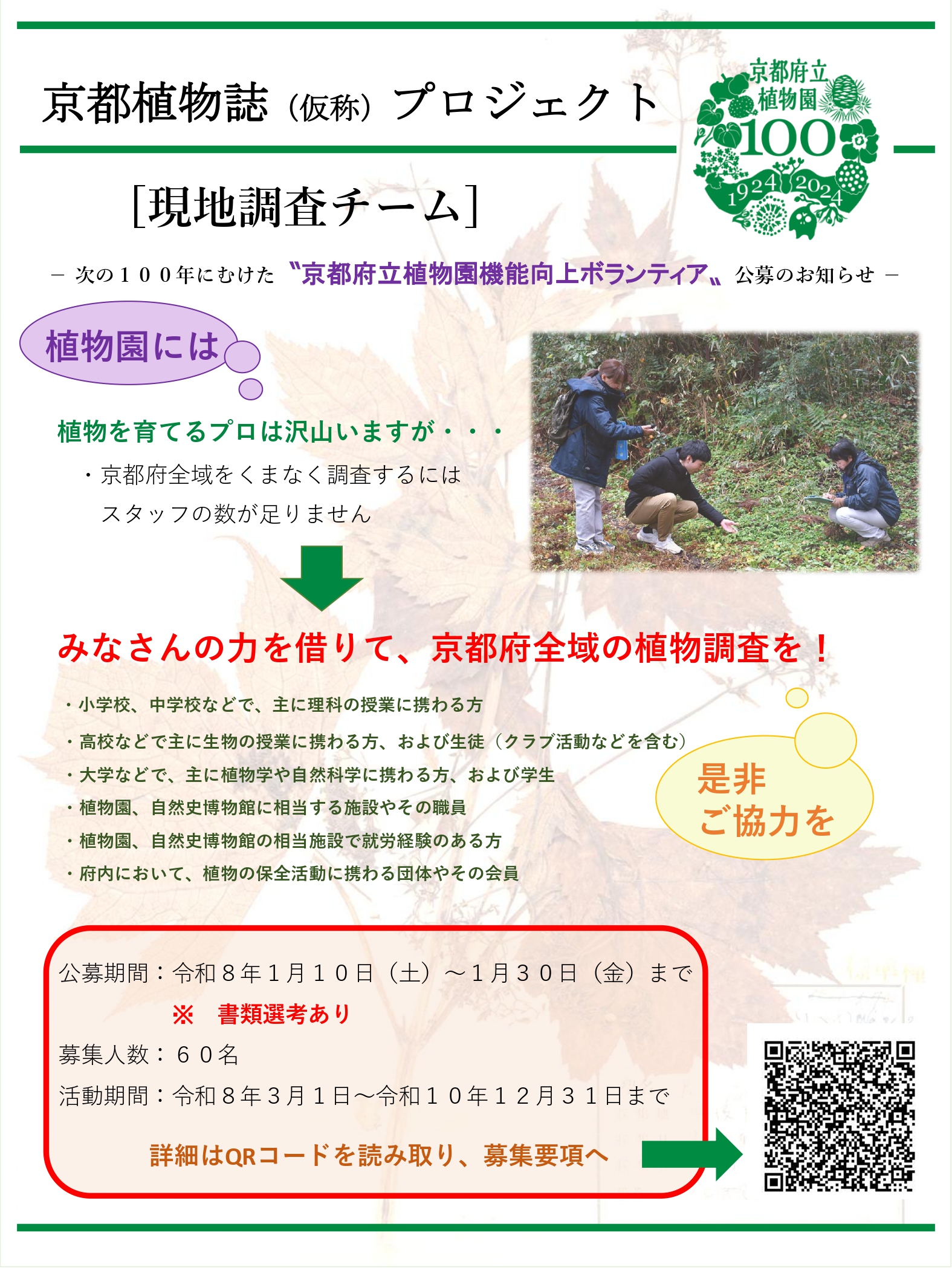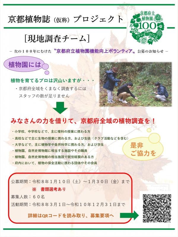 京都植物誌プロジェクトー京都府立植物園機能向上ボランティア[現地調査チーム]募集について