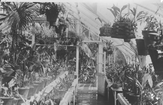 面積約370平方メートルで現在の三代目観覧温室の約10分の1に満たないものですが、7つの部屋に区切られ、ベゴニア、ポインセチア、ゼラニウム、食虫植物、バナナ、タコノキ、観葉植物や促成花卉など、各部屋の目的にあわせた植栽がされていました。