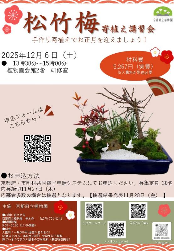 参加費:材料費5267円※お釣りの無いようご準備ください(別途入園料が必要)