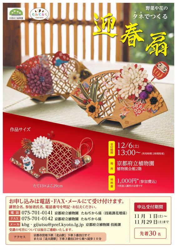 内容:野菜や花のタネを使った正月飾り(迎春扇)づくり