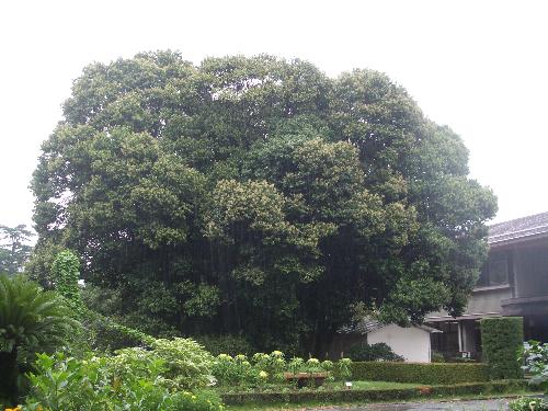 シリブカガシ(Lithocarpus glabra)は、ブナ科の仲間としては珍しく、秋に花が咲きます。植物園会館前にはシリブカガシの大木があり、黄褐色の花が樹冠を覆っています。花の近くでは大きく成長したドングリが見えます。シリブカガシのドングリは2年目の秋に成熟します。同属のマテバシイ(Lithocarpus edulis)は春に開花して翌年の秋にドングリが成熟します。