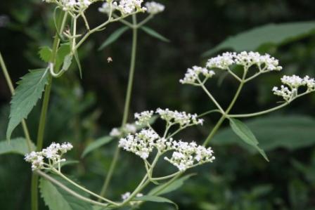 北海道、本州、四国、九州、沖縄の山地に生え朝鮮半島、中国にも分布しています。花冠は白色で径約4ミリ。根には独特の異臭があります。和名は漢字で書くと男郎花。オミナエシに比べて丈夫で力強い花を示したともいわれます。