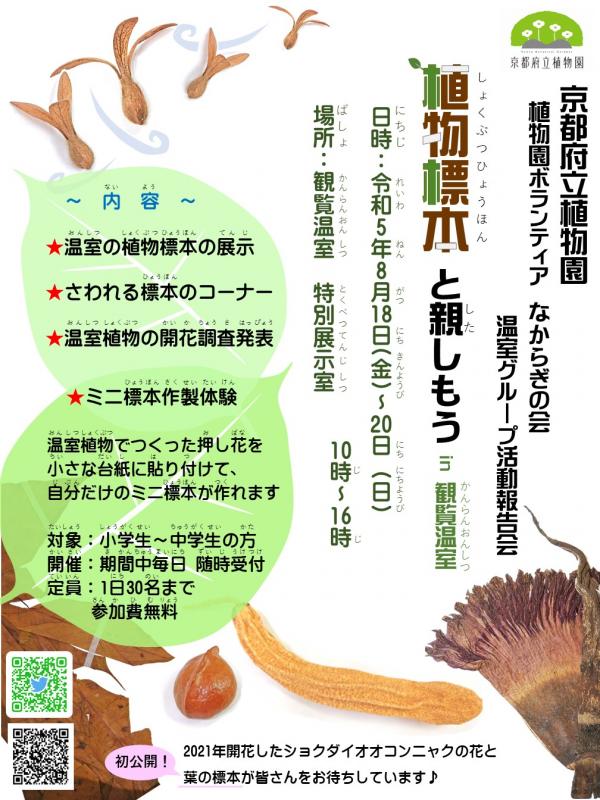 内容:ボランティアグループ「なからぎの会」による、観覧温室植物の標本作品の展示