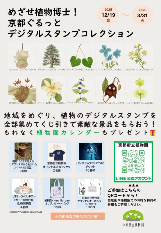 京都府立植物園を中心に、北山街協同組合・北大路商店街など周辺地域をめぐり、植物のデジタルスタンプを全部集めてくじ引きで素敵な景品をもらおう!