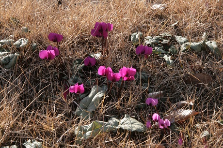 小型の原種シクラメンの一種。見頃は2月下旬まで。