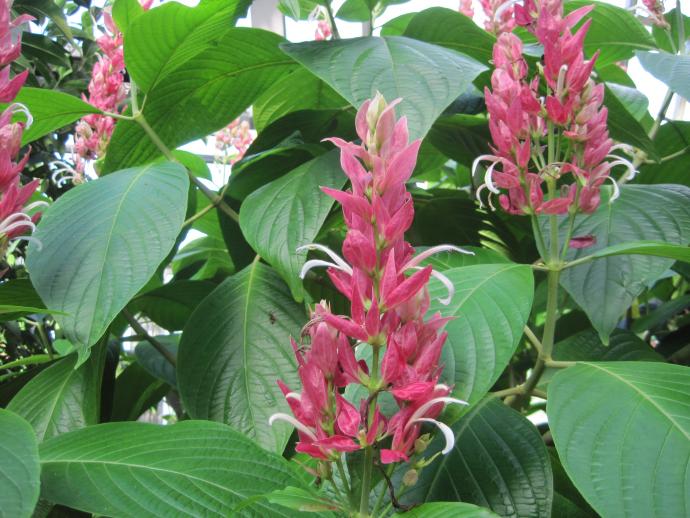 ベネズエラ原産。メガスケパスマ(Megaskepasma)は大きな覆うものという意味があり、別名ブラジリアンレッドマントと呼ばれている。ジャングル室にて見頃は8月下旬まで。
