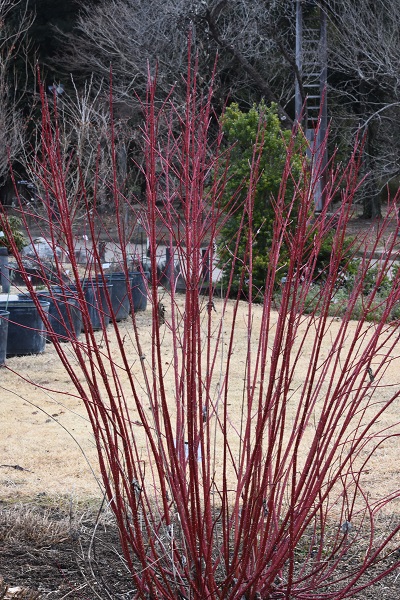 園芸品種。冬になり落葉すると鮮やかな赤い枝が際立ってくる。一般にはサンゴミズキの名で知られ、生け花にも利用される。四季 彩の丘にて見頃は3月上旬まで。
