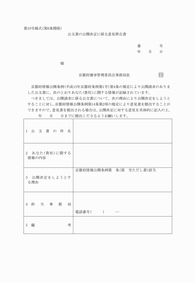 第7条 閲覧による公文書の公開は、京都府選挙管理委員会が指定する日時及び場所において行うものとする。