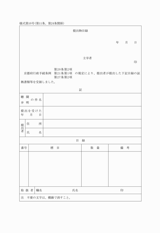 2 主宰者は、前項の提出物目録を作成したときは、その写しを当該提出物目録に係る証拠書類等を提出した者に交付しなければならない。