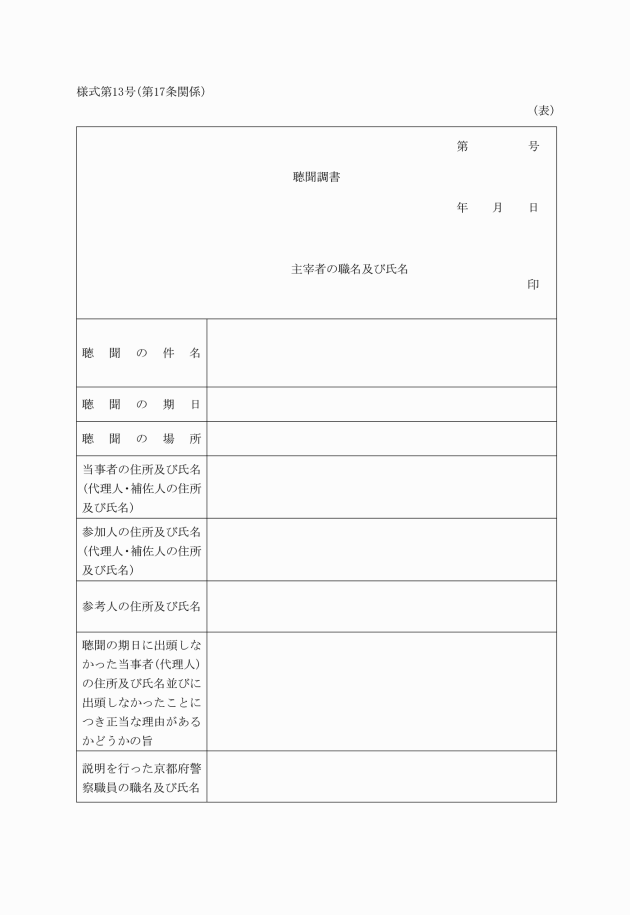 ○京都府公安委員会が行う聴聞及び弁明の機会の付与に関する規則