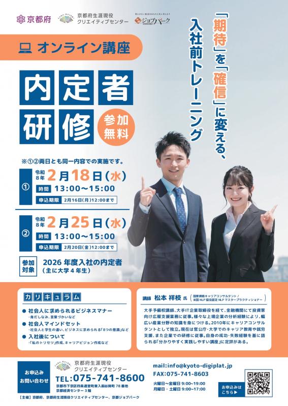 京都府では、人生100年時代を見据え、職業人生が長期化する中で「生涯学び・働き続けることのできる社会」を実現させるため、令和3年8月1日に「京都府生涯現役クリエイティブセンター」を開設しました。