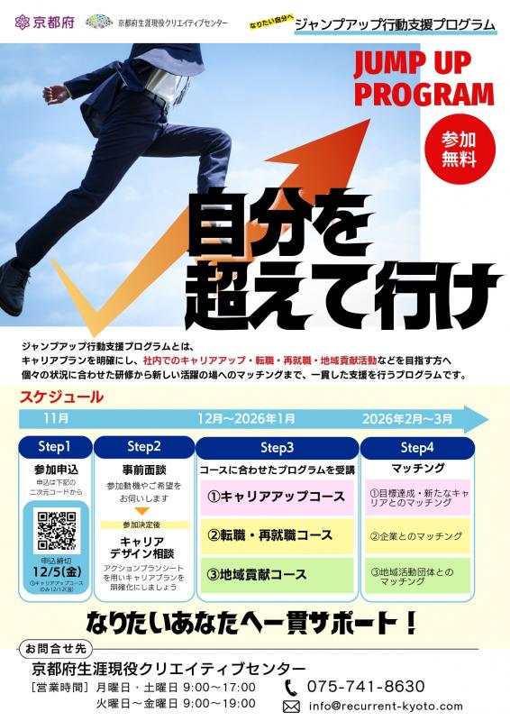 スキルアップやキャリアチェンジ、地域貢献等、次のステップを見据えた実践的な研修を開催します。