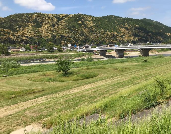 桂川や桂川河川敷には豊かな自然が広がり、水際や公園下流部は淀川固有の特徴的な生物が生息しているため、水際部のグリーンベルトを保全するため、草木を刈り残して、生物が住みやすい環境を保持しています。