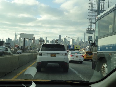日本車、日本車、たまにベンツ。日本の景色と変わらない。マンハッタンが見えてきました。