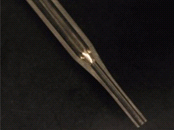 二九) 「曲げに強く、さびにくい血液分析装置用ノズルがほしい」というお客様の切なる声によって誕生した製品です。一般に、βチタンは、焼き付きやかじりつきが発生しやすいため、加工が非常に困難なため敬遠されがちですが、当社はその類い稀な強度や耐食性、復元性に着目し、10年もの歳月をかけて、世界初の外径0.5mm、内径0.3mmの小径パイプ自社内一貫生産の術を見い出しました。