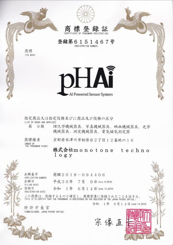 同社が経営革新計画「ワイヤレスケミカルシステムの開発」の事業で開発された製品「pHAI(ファイ)」が商標登録されました。