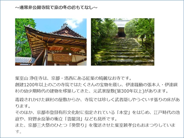 株式会社Tn(外部リンク)(京都市)の「お寺空間」プロジェクト(外部リンク)です。